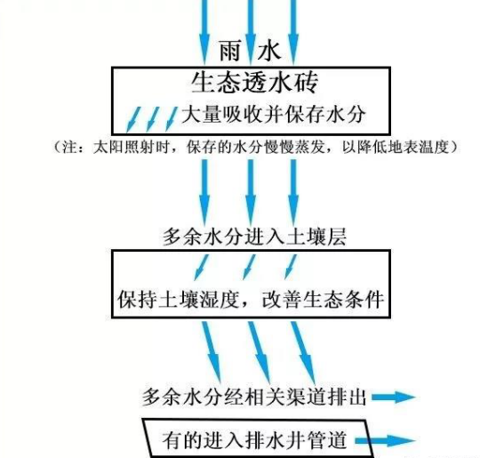 什么是海綿城市?簡言之,就是城市像海綿一樣有彈性,能吸水、蓄水、排水,實現(xiàn)水循環(huán)利用、有效防內(nèi)澇。鋪設生態(tài)透水磚,是除雨污分流改造外,我市海綿城市建設的一個重點和亮點。鋪有生態(tài)透水磚的人行道,看上去好像與鋪設普通磚的人行道沒什么兩樣,但仔細一看就會發(fā)現(xiàn)有所不同,生態(tài)透水磚表面布滿小孔,而普通磚表面比較光滑。這是因為生態(tài)透水磚以礦渣廢料、石屑、普通硅酸鹽水泥為主要原料,設計有一定孔隙率,經(jīng)高頻振動加壓而成,普通磚則主要用石粉廢渣、低標號水泥等制成。下雨時,生態(tài)透水磚能大量吸收并保存水分,達到飽和狀態(tài)后保存不了的多余水分則透過磚體進入土壤層,從土壤層出來后的多余水分最后經(jīng)相關渠道排出,有的通過排水井管道排出。而普通磚只能吸收少量水分,大部分水經(jīng)由地表流掉,易導致路面積水。