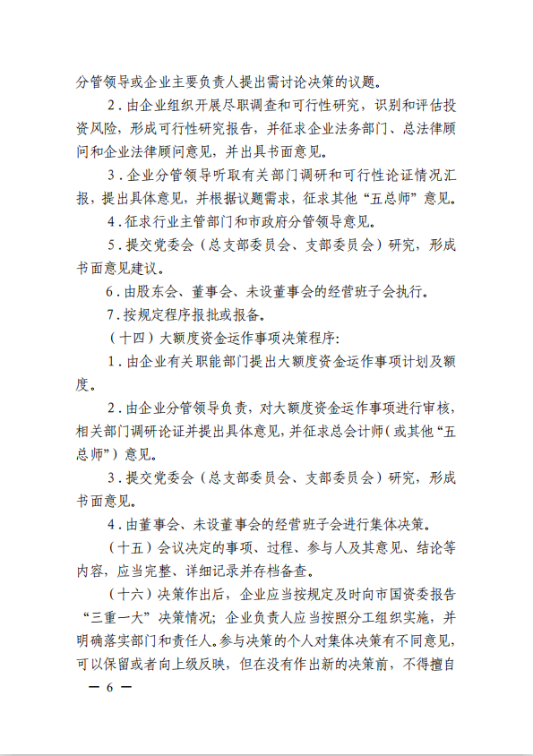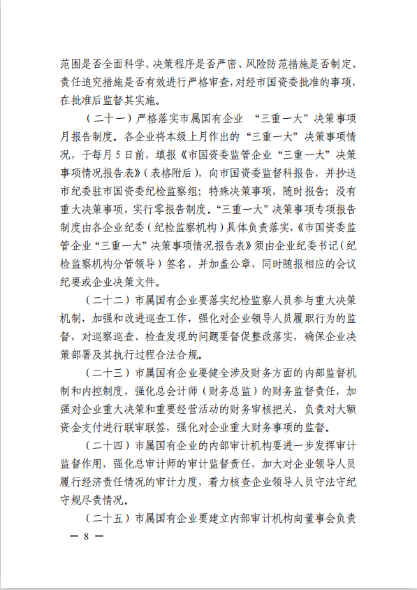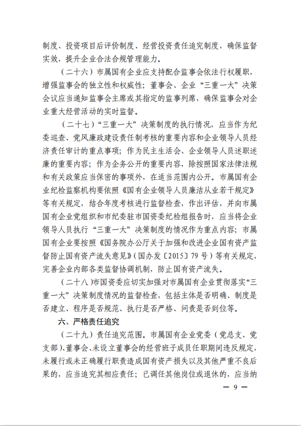 關(guān)于進(jìn)一步規(guī)范市屬?lài)?guó)有企業(yè)貫徹落實(shí)“三重一大”決策制度實(shí)施意見(jiàn)(國(guó)資黨委[2020]21號(hào))