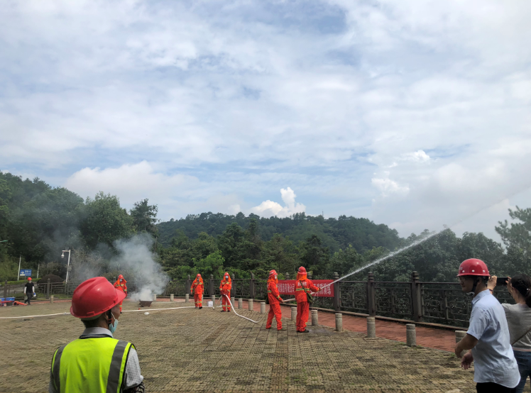 實戰(zhàn)演練模擬園區(qū)發(fā)生火災(zāi),員工發(fā)現(xiàn)火情后迅速上報,并同時啟動火災(zāi)事故應(yīng)急處置預(yù)案,成功滅火,按活動方案圓滿完成演練。結(jié)束后,演練活動總指揮修海金對全體參與人員進行了消防安全知識培訓(xùn),并從強化安全生產(chǎn)的認(rèn)識、強化大錦山公園全體工作人員安全責(zé)任落實、強化安全生產(chǎn)事故的防范和處置、強化安全生產(chǎn)的應(yīng)急演練、強化安全生產(chǎn)的日常監(jiān)管五個方面進行了工作部署。