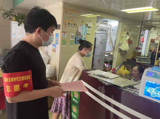 八月末,天氣炎熱,市政集團(tuán)的志愿者們身著紅馬甲,不畏臟、不怕累,各司其職,分時(shí)段分批次在蓮新社區(qū)范圍內(nèi)開展創(chuàng)城活動(dòng),其中清潔崗的志愿者們帶著夾子、掃帚、垃圾袋等清掃工具,對(duì)街道路面的紙屑、塑料袋、煙頭等生活垃圾進(jìn)行清掃,將亂停亂放的自行車整齊的排列在停車位上,使得街道整潔一新。宣傳崗的志愿者們走進(jìn)商鋪,發(fā)放文明宣傳標(biāo)語(yǔ),動(dòng)員商鋪店主一起,注意門前三包,在平時(shí)營(yíng)業(yè)工作中,遇到不文明行為時(shí),進(jìn)行及時(shí)規(guī)勸,讓市民自覺(jué)遵守,規(guī)范自身行為,積極踐行“共創(chuàng)共享”的創(chuàng)城理念,共同為創(chuàng)建文明城市出一份力。交通崗的志愿者們通過(guò)積極引導(dǎo)道路交通,向過(guò)往行人科普創(chuàng)城溫馨小知識(shí),加強(qiáng)城市文明建設(shè)。